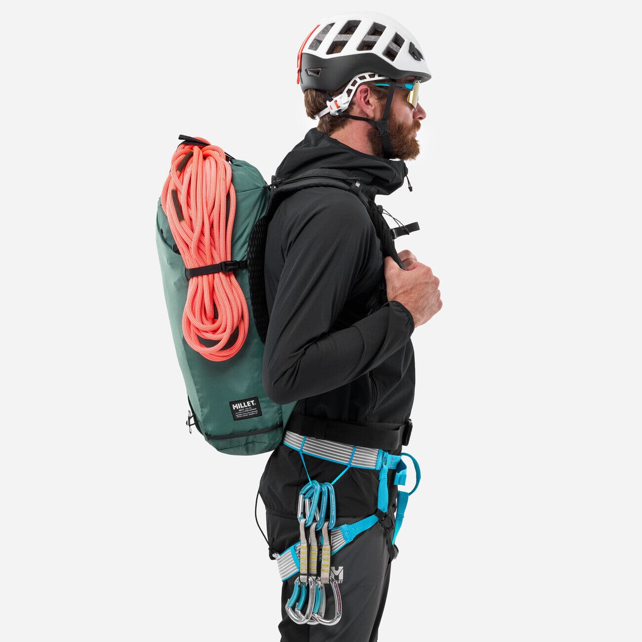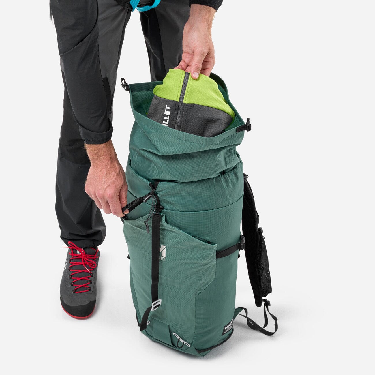 Yes — that’s part of its DNA: rope holder, FPP™ ice axe attachments, and an organization system designed for action. It allows you to secure equipment externally without unbalancing the carry.