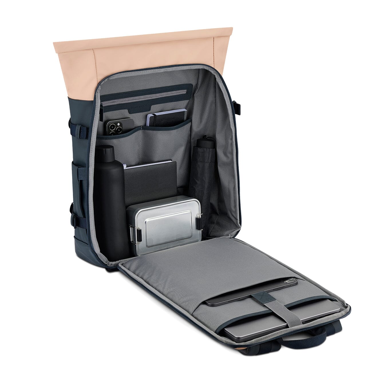 Avec un total de cinq poches intérieures, dont une à fermeture éclair, et plusieurs rangements extérieurs (deux poches latérales pour bouteilles, une grande poche avant avec zip en nylon robuste et une poche avant plate imperméable), chaque objet trouve sa place. La discrète poche antivol située à l'arrière sécurise vos objets de valeur, et une grande poche arrière ajoute un espace de rangement supplémentaire très pratique.