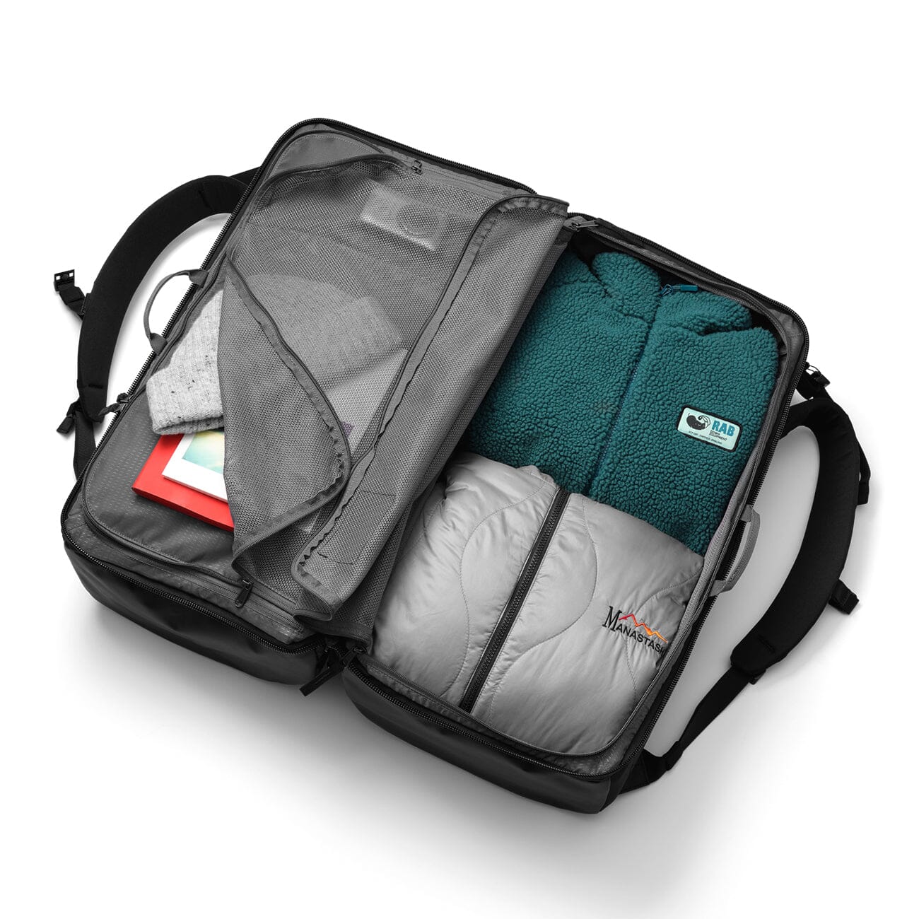 Sa construction split en ouverture clamshell dévoile deux compartiments parfaitement équilibrés. Ajoutez à cela deux tiges structurelles en aluminium, des rappels de charge, une sangle poitrine et la technologie Rib Cage Protection™ — et vous obtenez un sac grand format qui reste droit, stable et étonnamment maîtrisé pour 70 litres. Un duffel 70L peut-il vraiment être organisé ? Oui — quand la structure impose la discipline.