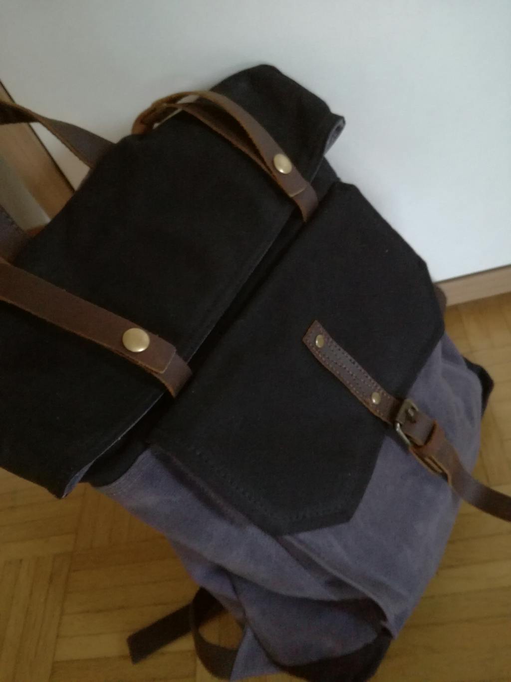 Matériaux : Toile de coton cirée + cuir pleine fleur
