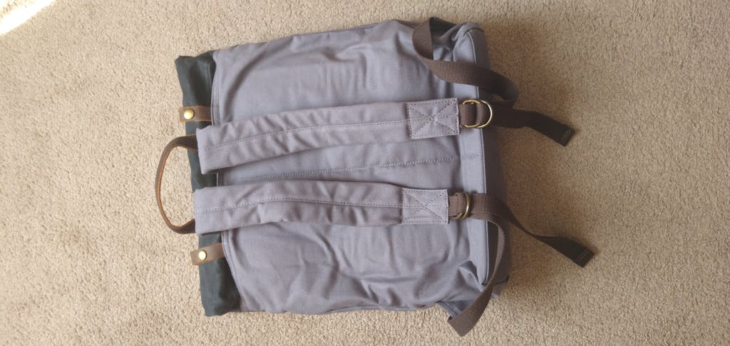 La toile est cirée, ce qui offre une excellente résistance à l’eau. Vos affaires restent protégées même sous une pluie fine.
